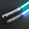 Equipped with RGB-X electronics, these lightsabers offer an immersive duelling experience with a range of features. The baselit blades provide vibrant illumination with multiple colour options, though they are best suited for dark environments as their light comes solely from the emitter. Designed for heavy duelling, these sabers ensure durability while maintaining a screen-accurate design. Each lightsaber includes 16 pre-installed sound fonts, smooth swing motion detection, flash-on-clash effects, and gesture-based controls. While already equipped with such great features, they also support Bluetooth connectivity, allowing users to access settings more easily and upload extra sound fonts via the “XenoConfigurator” app on iOS and Android.